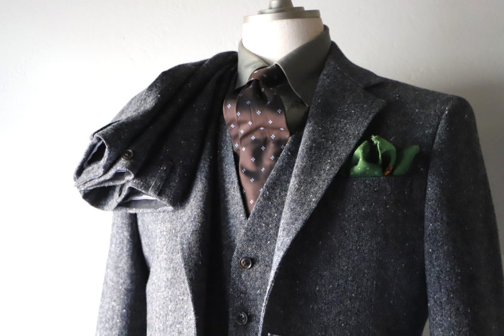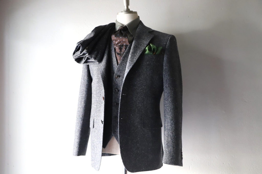 本日はビンテージの雰囲気漂う、ツイードスーツのご紹介を。本場英国のドネガルツイードを使用。ドネガルツイード特有のネップも良い感じで主張してくれていますネ。