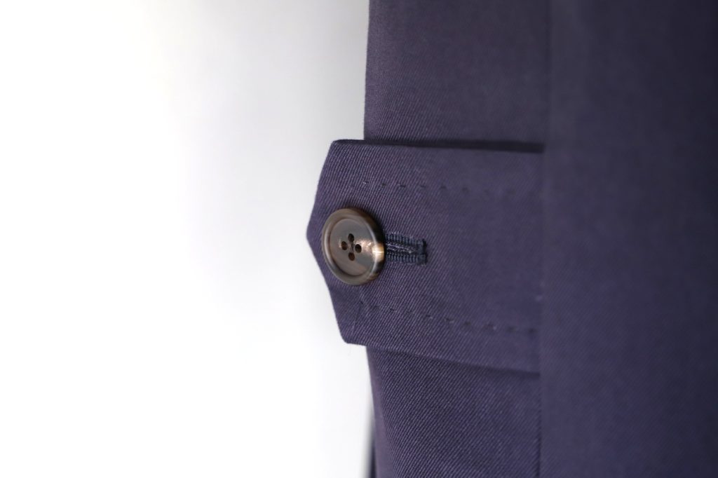 実にクラシックで紳士的。当店では人気のこのデザイン、既製品では中々お目にかかれませんヨ。ネイビーカラーのコットンは、オンオフ兼用で使いやすいの嬉しいポイント。