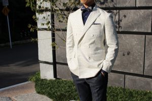 今回は4.5オンスと、少し軽めな服地にてオーダー。ガッシリとした服地をご希望のお客様は、事前にご連絡いただけますとご用意可能です。