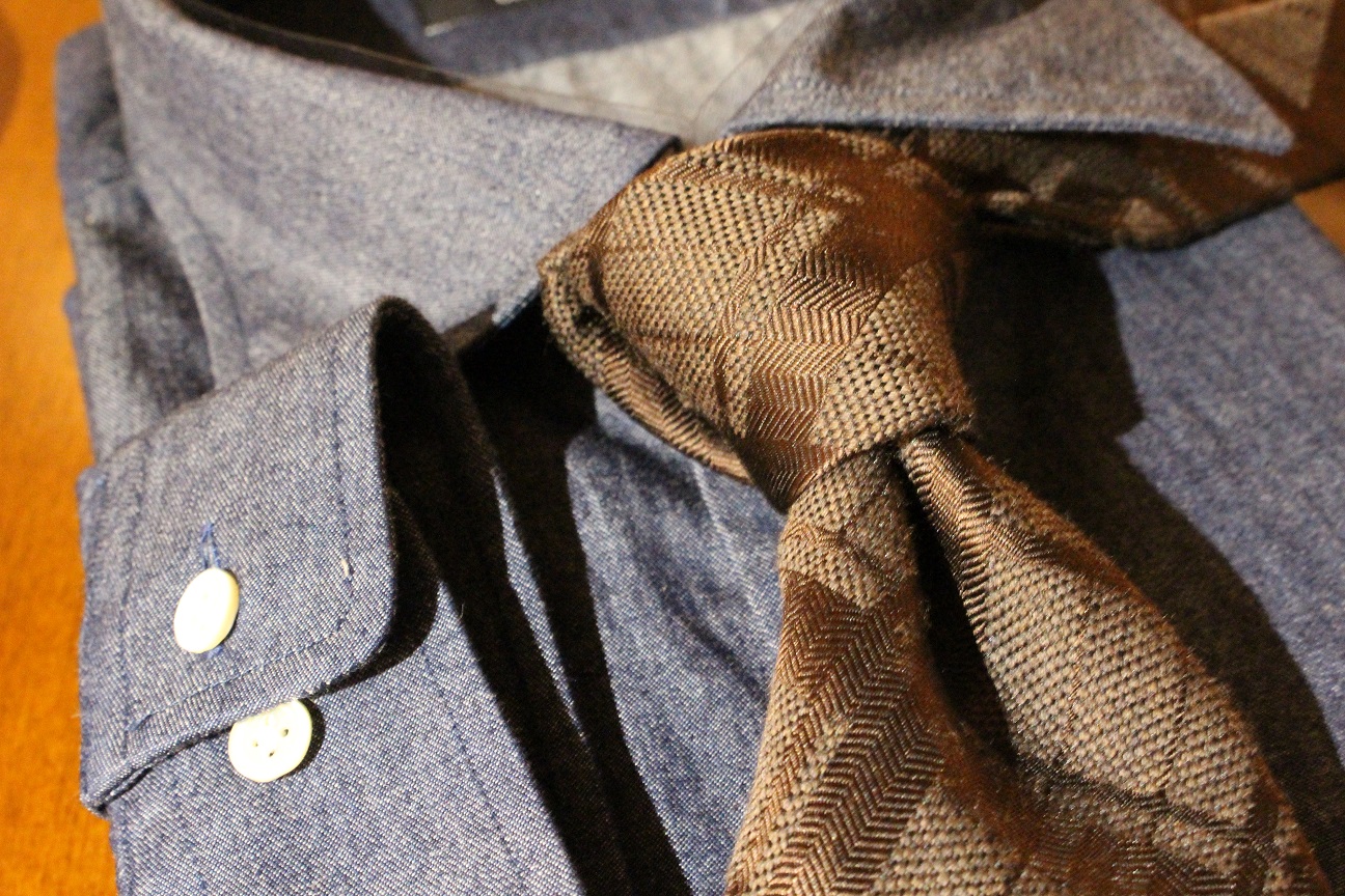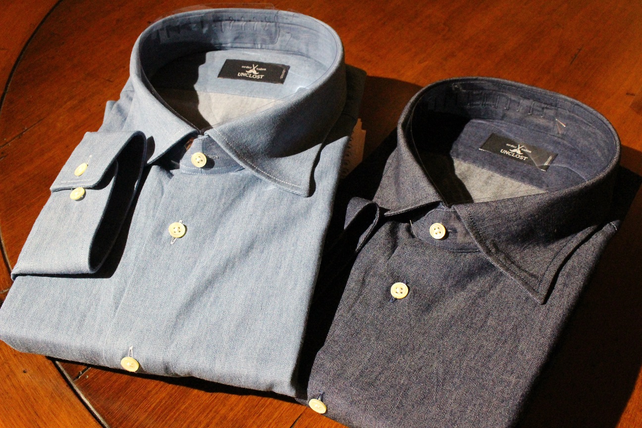 昨日に続き、オーダーシャツのご紹介を。これから着用機会が増えるであろう、デニムシャツ。フランネルのスーツや、ジャケット、ツイード素材のモノを着用される方には必須アイテムかと。