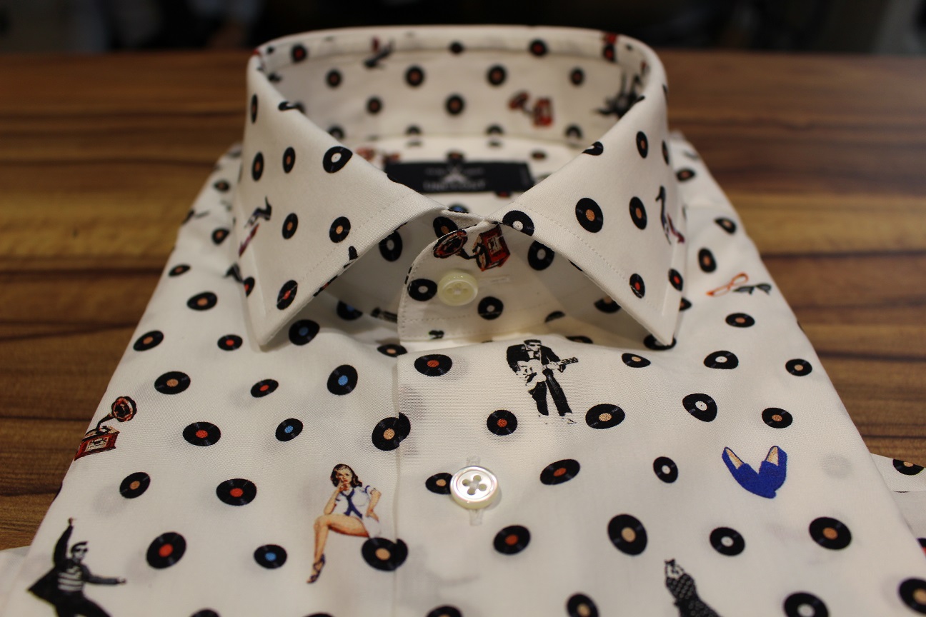 本日も素敵なオーダー商品のご紹介を。エルビスプレスリーのプリントシャツ。。。名曲タイトルがプリントされております。ファンには堪らない一枚かと。カジュアルなスーツやジャケパンの中に合わせるシャツとしてお勧めです。