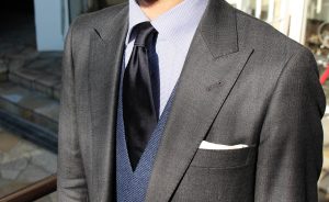 襟のロールがとても美しく、ビジネス、カジュアル両方で、活躍してくれる。