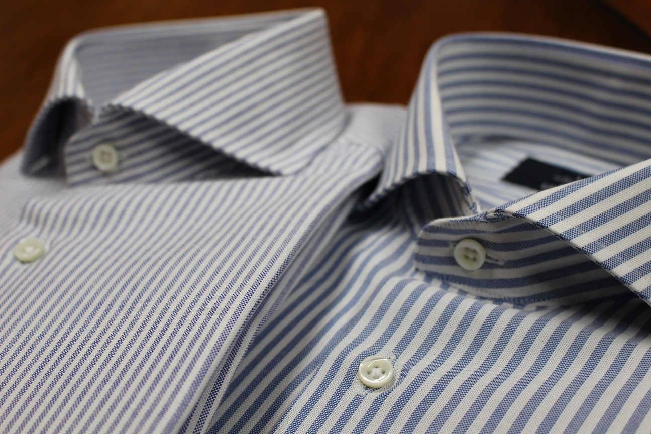 最近では、春先に向けオーダーシャツのご注文も多くいただいております。やはり爽やかなブルー系生地に人気が集まっております。コーディネートもしやすく、簡単にお洒落に魅せる事が出来ますヨ。