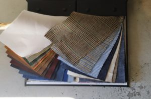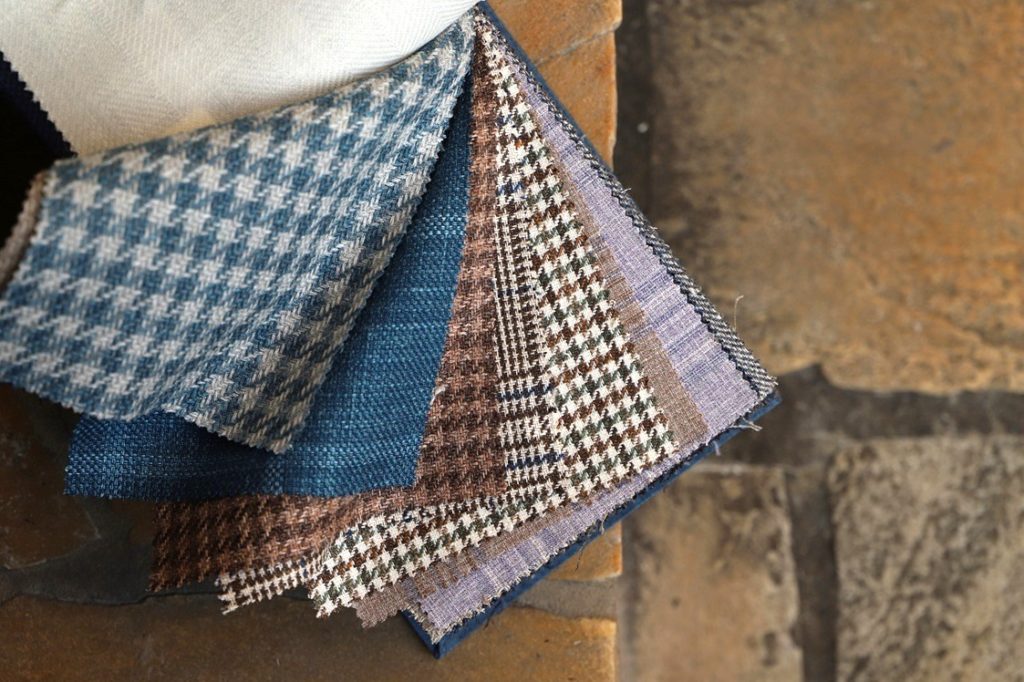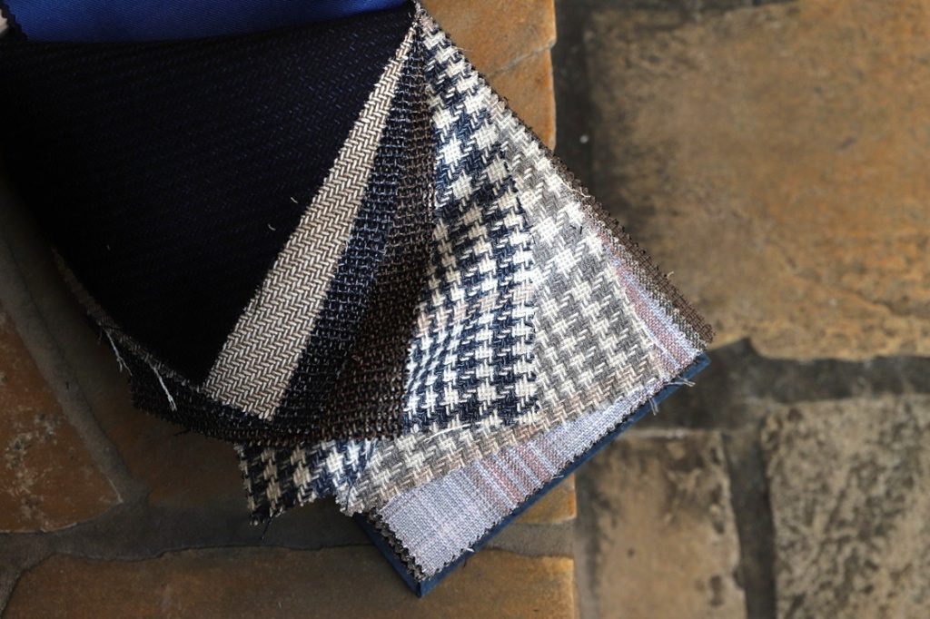 春夏らしい色鮮やかなカラーバリエーション、素材感の違った生地など豊富にございます。特に春夏は、シルク&リネン混紡の服地が目を引きますネ。