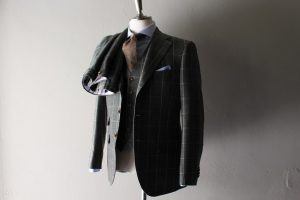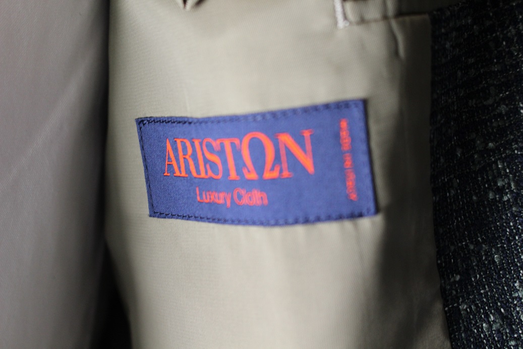 本日は素敵なオーダージャケットのご紹介。ナポリの名門ブランド、アリストン。独特な織が魅力的。グリーン系の服地です。