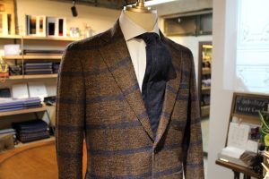 さてさて、本日も素敵なオーダージャケットの出来上がりをご紹介。久留米市よりお越しのO様にオーダーいただきました一着。