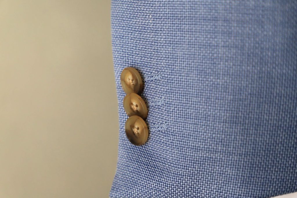 美しい空色。シルク混紡の超軽量ジャケット。暑苦しい時期でも、これを羽織るだけで見た目も涼し気。貴方の印象も、間違いなく上がるってもんですヨ。