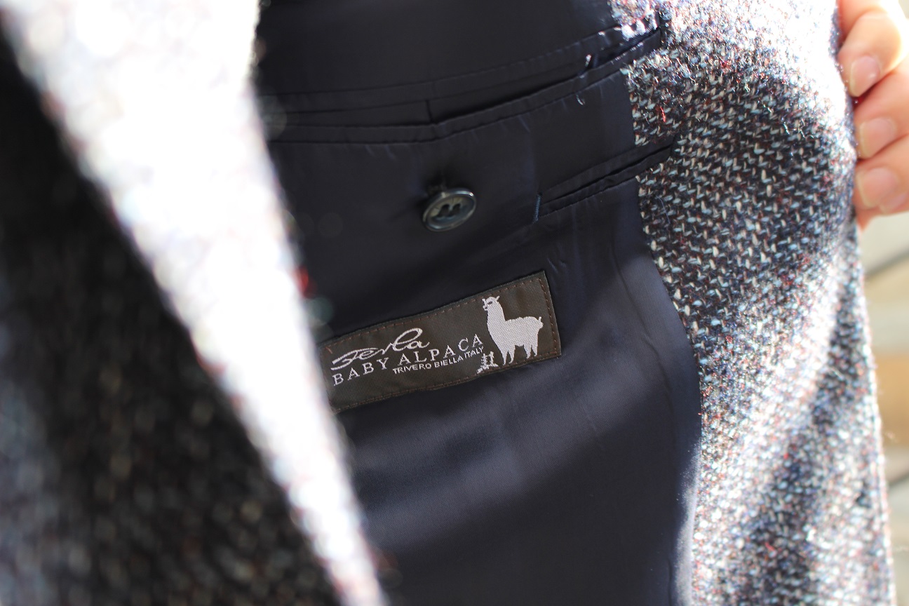 フェルラより、毛足の長いベビーアルパカを使用した服地です。フェルラらしい、独特な色使い。タートルネックのセーターなどとの相性は抜群。