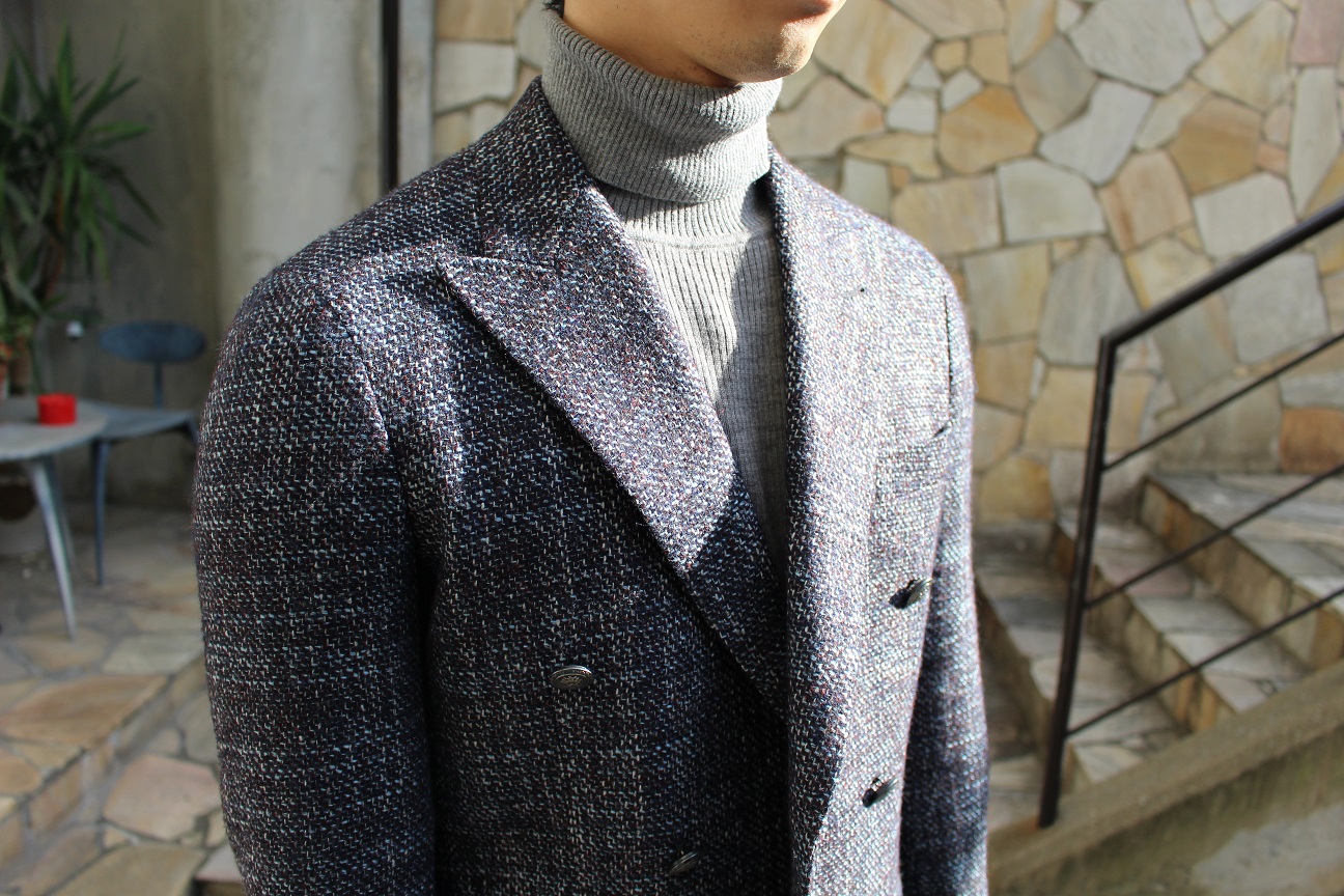 この時期、当店でもタートルネックセーターをコーディネートに合わせる事が増えて参りました。冬場には欠かせませんネ。。。本日は、そんなタートルに合わせるピッタリのジャケットのご紹介です。