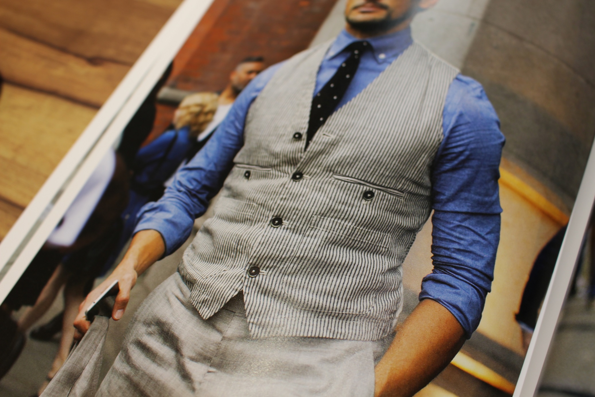 こういうハイセンスなベストはコーディネートのイメージが膨らみますネ。参考までに↓