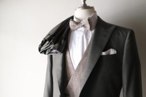 美しい光沢がございますネ。目付は680gmsとドッシリ。人気なのはやはり、ブラウンやベージュ、グリーン系でしょうか。最近ではセットアップでのオーダーも増えて参りました。