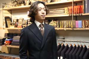 英国コットンと言えばやはりこのメーカー「ブリスベン・モス」。人気のコレクション、シェークスピアのツイル生地にてオーダーいただきました。適度なハリコシに、ヌメリ、光沢感などトータルバランスが凄く良いのです。