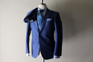 生地のヌメリ、ハリコシ共にハイレベル。高級感もございます。スーツを初めてオーダーされるお客様には、お試しいただきたいブランドですヨ。