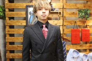 ガッシリ、スポーツマン体型のS様。適度にゆとりを取りつつ、お腹廻りはキレイに絞りを入れました。バッチリお似合いでしたネ。