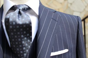 という事で、S様にもオーダーいただきました、モヘヤ混のスーツをご紹介。モヘヤ特有の、夏らしい光沢が魅力です。