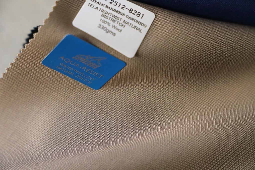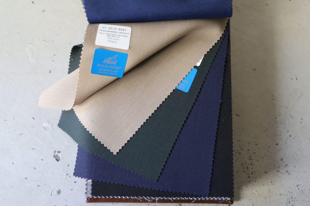 希少なサクソンウールを用いたサクソントロは、ナチュラルな光沢感もございまして個人的には好み。写真下のハイツイストも、名前の通り皺になり辛く弾力がございます。英国モノとは違い、肌触りも抜群。ストレッチ機能に加えて、今季より新たに追加された撥水加工も施されておりますヨ。