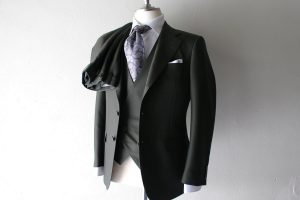 1959年創業、英国ヨークシャー地方にて高級服地を生産しているチャールズクレイトン。カシミヤや、超細番手の服地を得意としており、海外ラグジュアリーブランド「アルマーニ」「ブリオーニ」「グッチ」「プラダ」に服地提供をしている事でもしられています。本日のご紹介はブルーグレーのスリーピース。