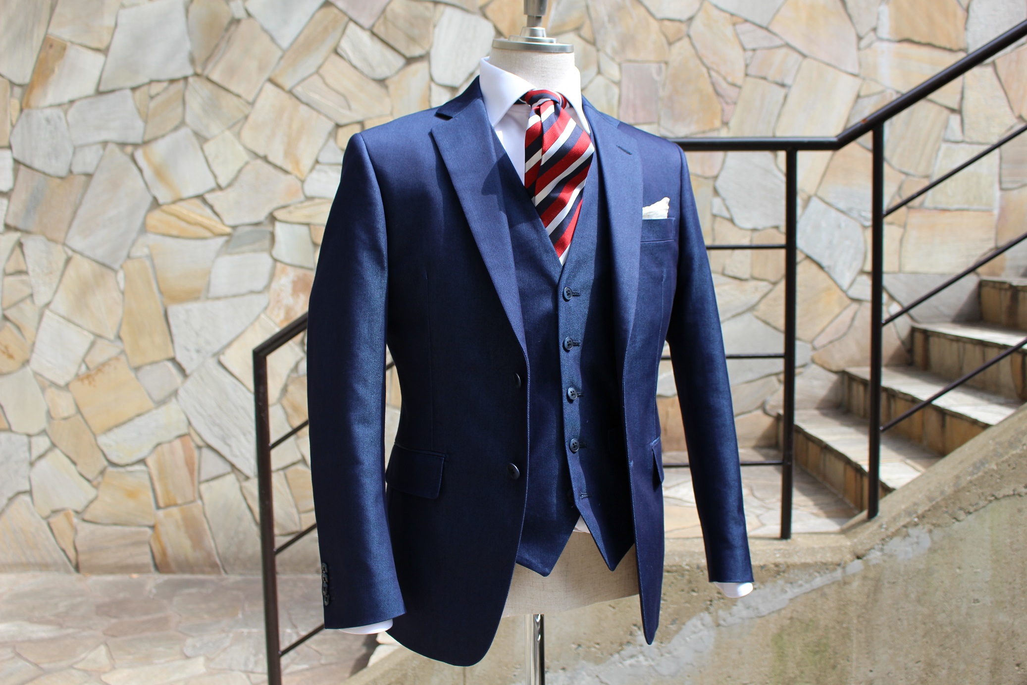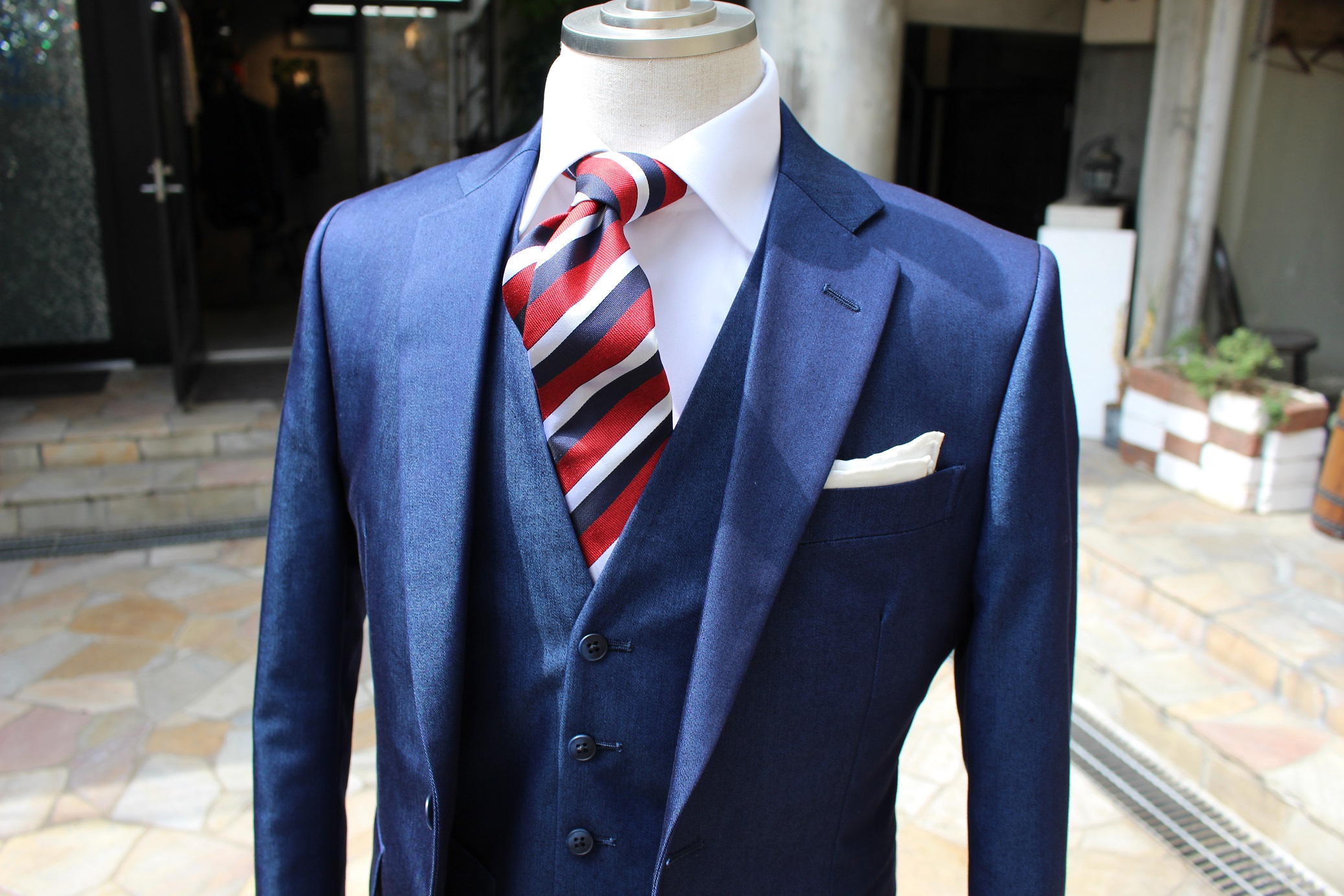 王道のネイビー無地のスリーピースも、コットンソラーロであれば、夏らしい艶が季節感を演出してくれます。
