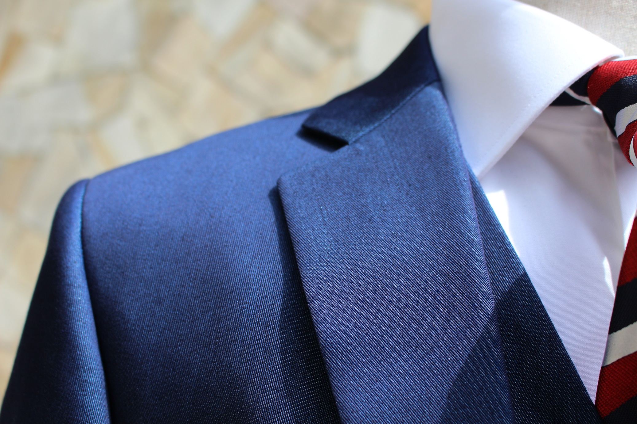 実は本日ご紹介のコットン服地、美しい艶の他に、機能性を兼ね備えておりまして、ストレッチ機能、吸湿性が通常の5倍程ある、という夏場でも大変過ごしやすい服地となっております。