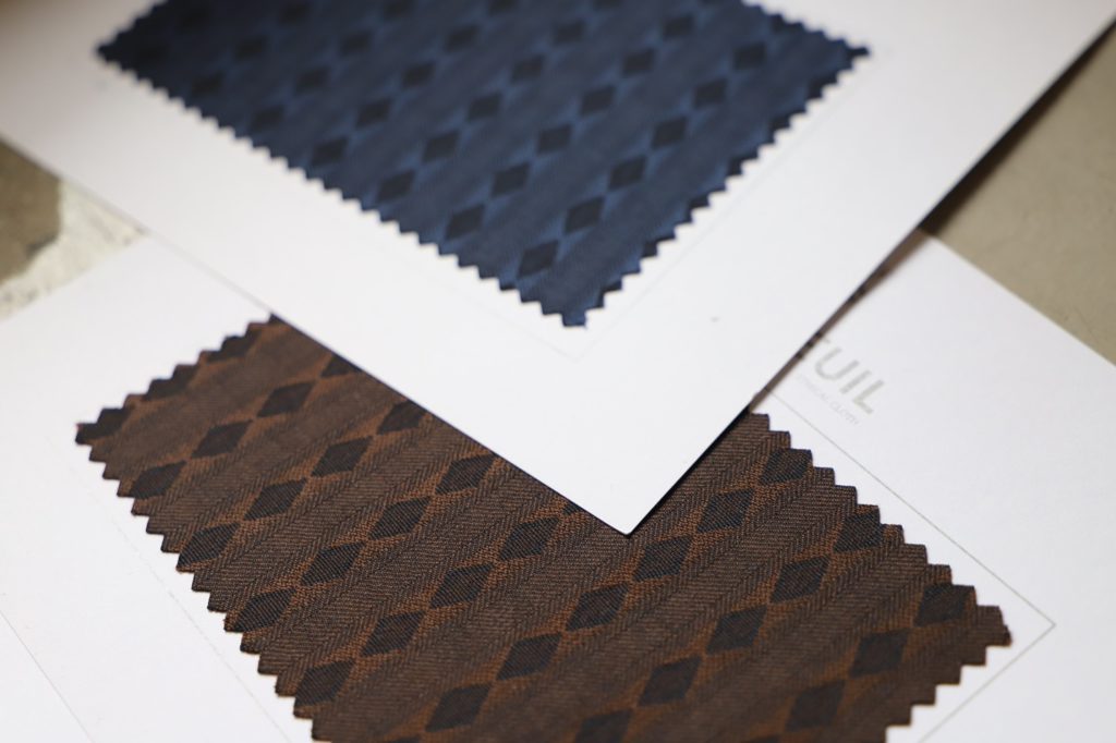 この扇模様の様な独特な織。フランスブランドでありながら、ちょっと和の雰囲気が感じられますよネ。出来上がりが楽しみ。。。