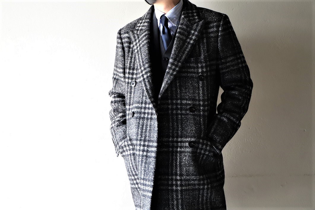 今季は特に多くのお問い合わせをいただいております、オーダーコート。本日は見本用に制作しておりました、ダブルチェスターコートが出来上がって参りましたので、ご紹介。