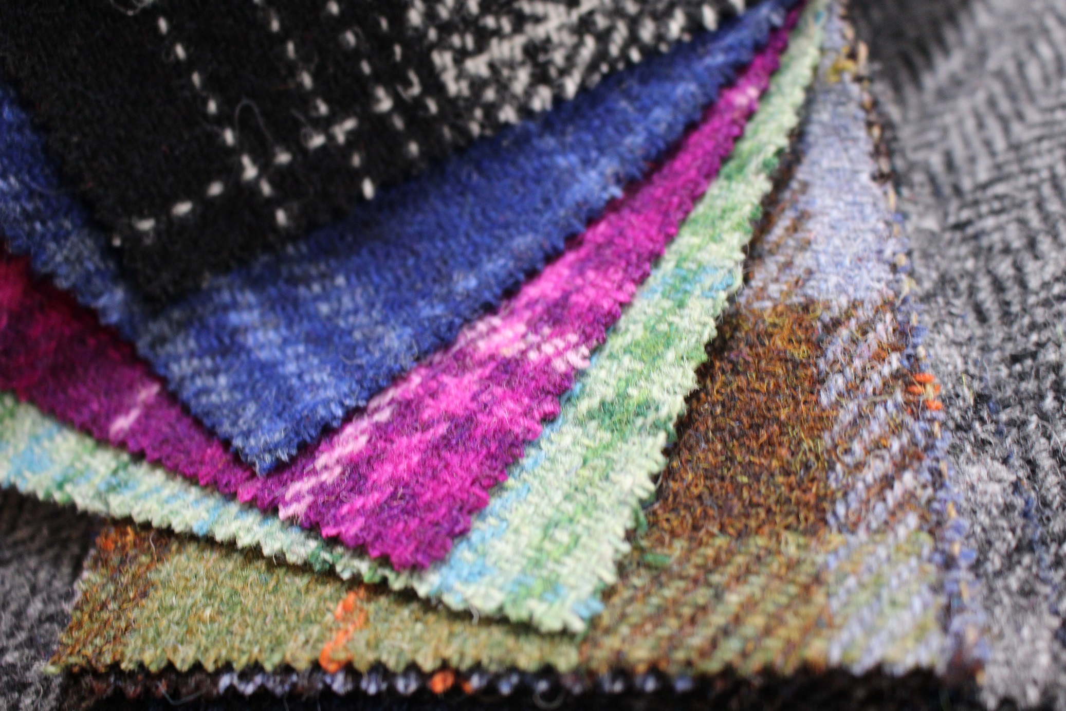 そんなハリスツイード、カントリー調で渋めな色柄が多かったのですが、最近ではビビットな色使いのモノや、面白いチェック柄など、次々に生産しております。