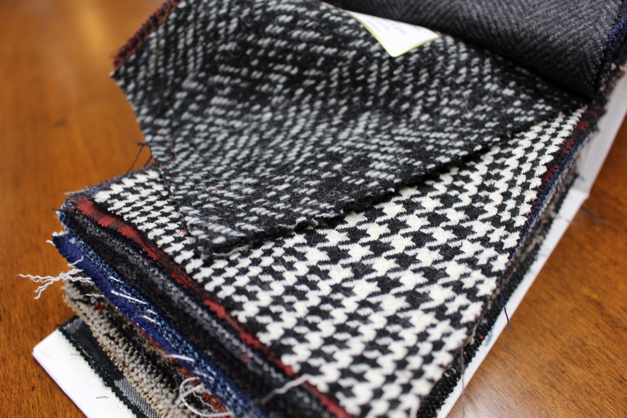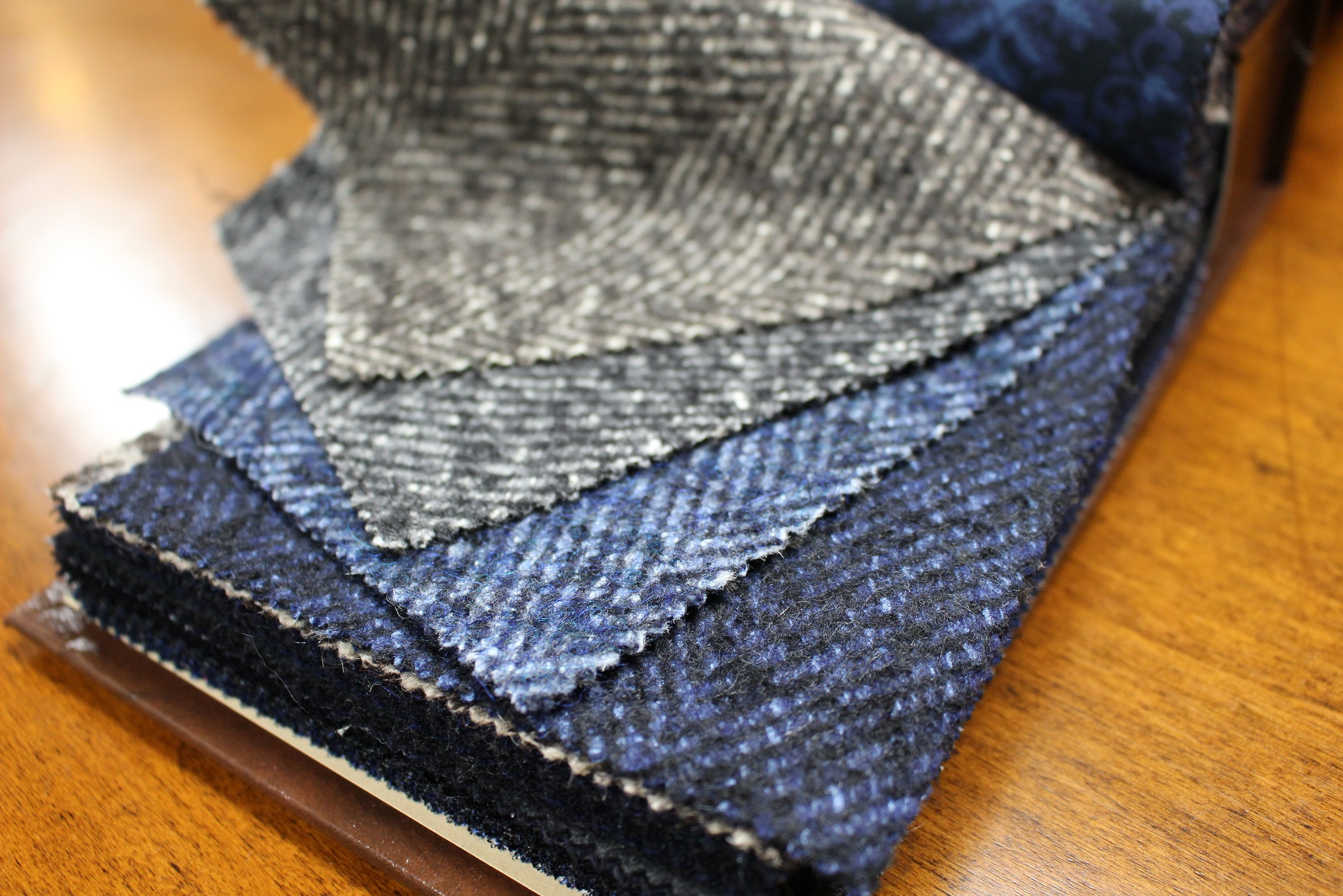 目付の軽い薄手な服地から、ハリスツイードなどの、ガッシリとした肉厚のある服地までご用意しております。