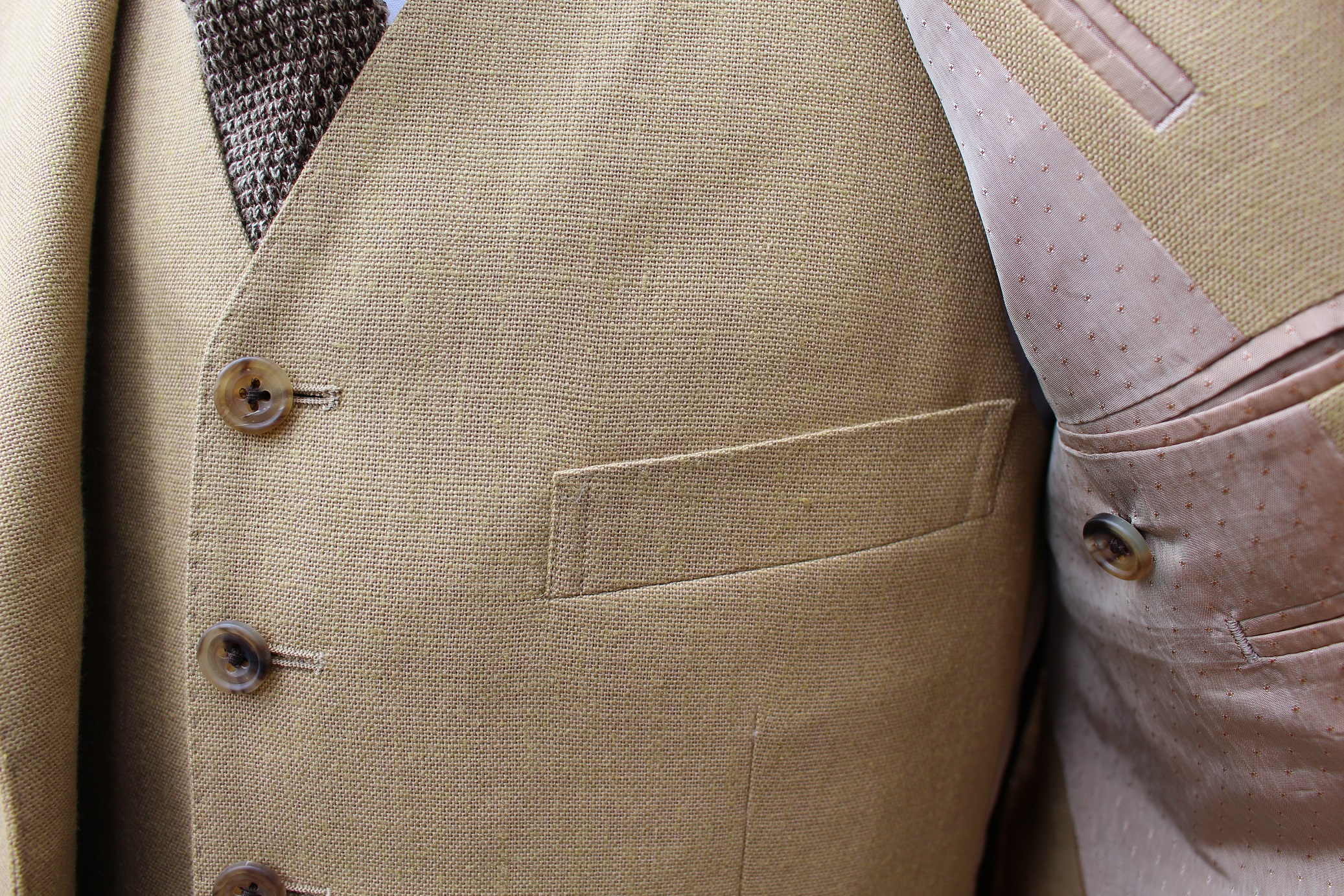 梅雨空が続いておりますが、来週は晴れマークが並んでおりました。33度という最高気温もネ。嬉しいやら悲しいやら。。。そんな日にはリネンのスーツでも着て、お仕事やお出かけに臨みたい。リネンのスーツ、、個人的に今季最も満足度の高かった服地に、ハリソンズエジンバラのシーシェルがございます。