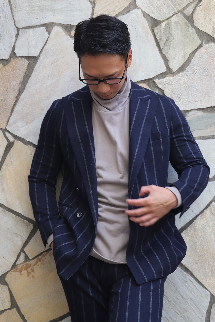 秋冬シーズンに向け、ビジネススーツは勿論ですが、カジュアルなジャージー生地での、セットアップをご注文をいただく機会が増えて参りました。ジャージーは、通常の織とは異なり、抜群のストレッチ性とリラックスした雰囲気が特徴となっております。