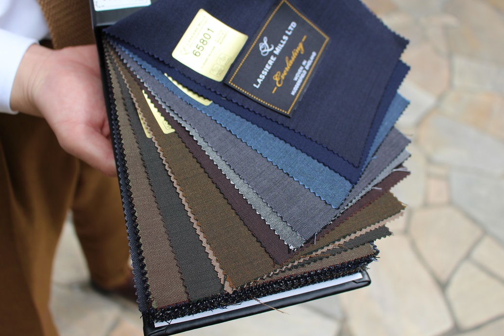 英国老舗ミル、ラッシャーミルズ。今季のモヘヤ混紡生地は大幅にボリュームアップ。爽やかな光沢感と、ハリコシは春夏シーズンの定番。