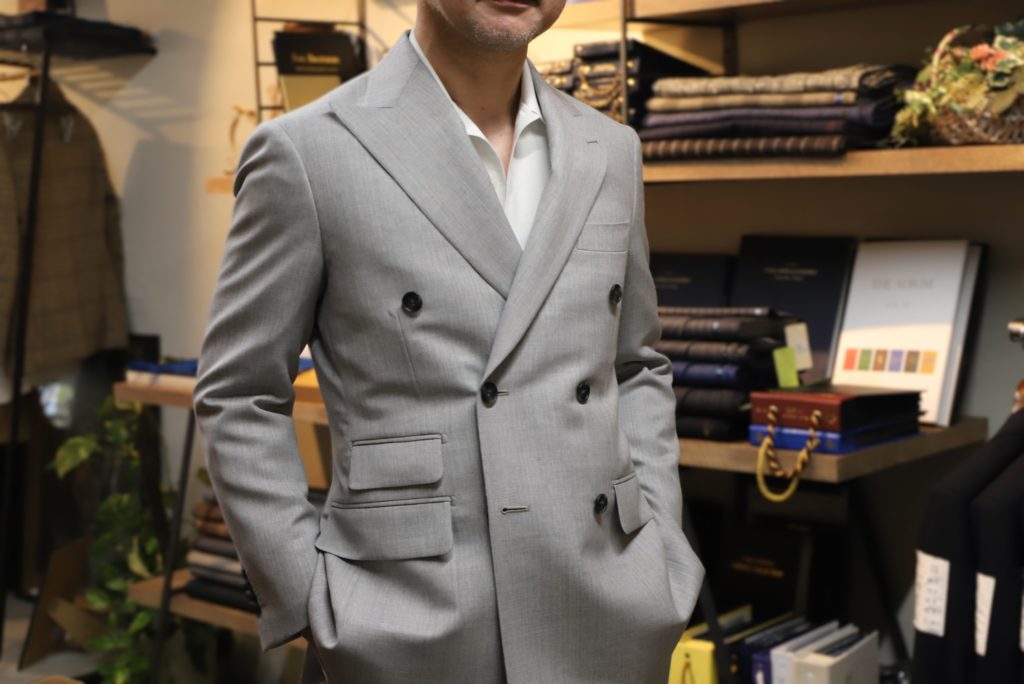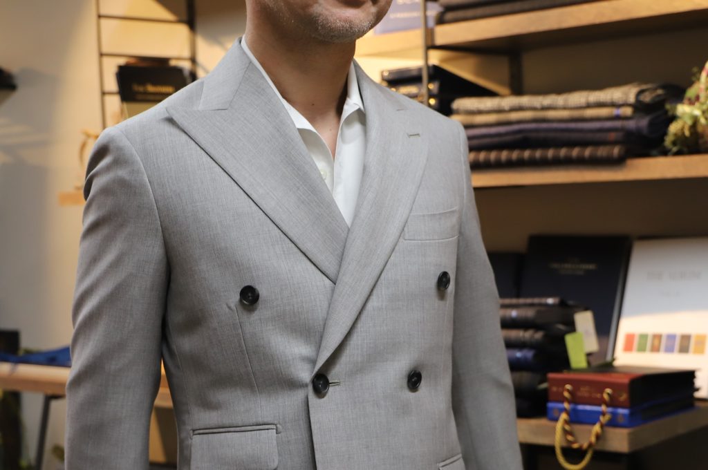 本日はクラシカルスタイルをこよなく愛するN様による、これまたクラシックなライトグレースーツのご紹介。N様、いつもありがとうございますッ。