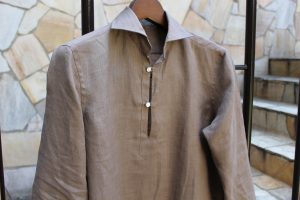 リネン特有のテカリ、粗さ。他の素材だとマイナスになりそうなトコロがリネンだと逆に良い。今回はタイドアップしたシーンをイメージして、撮影しましたがカジュアルにももちろん着用して頂けます。