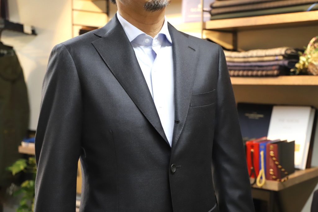 今回はイタリアンモデル、デザインにてオーダーいただきました。独特なショルダーラインがいい雰囲気を出しておりますヨ。
