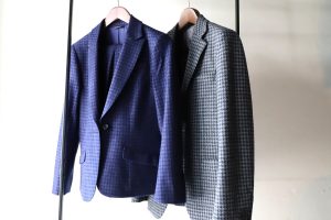 本日のご紹介は、お客様と話し合いを重ね完成した、マオカラージャケット。これは傑作の予感。立ち襟のデザインや、ポケット、ボタン位置などなど拘りポイント多数。