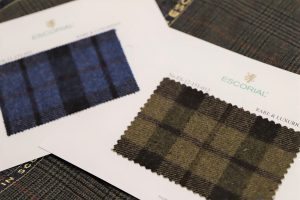 本日のご紹介は、オッドベストとしてご注文をいただいておりました一着。デザイン性の高いチェック柄。今回はダブル、ショールカラーのデザインにて。