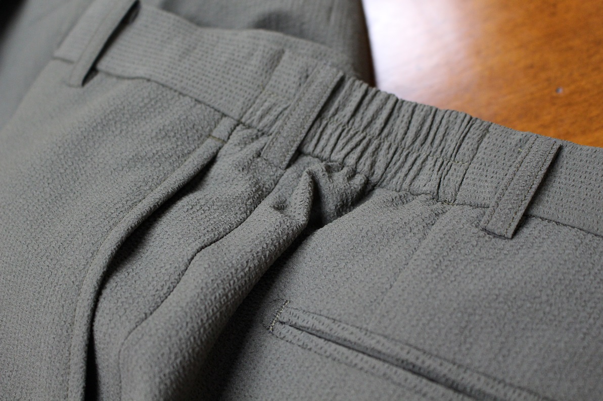 今回はセットアップにてオーダーいただきました。シワになりづらく、強度もございますので、パンツ単品でのヘビロテOKです。両サイドにゴムを付けております為、カジュアルな雰囲気も高まり、リラックスしてご着用いただけますヨ。