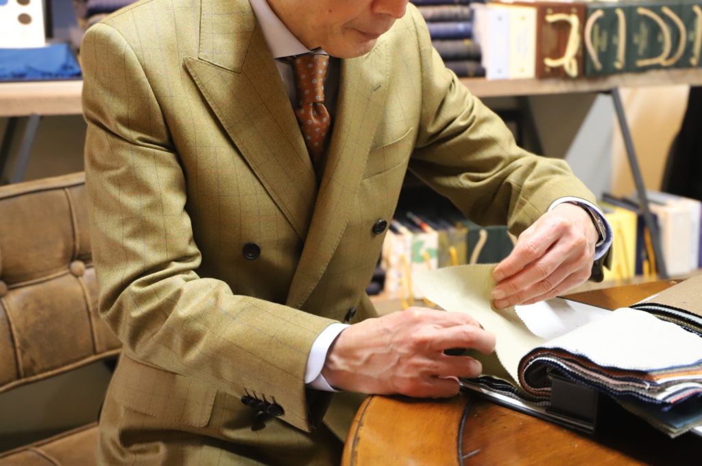 ツイードで良く目にする柄行きですが、これがスーツ地で手に入るなんて一石二鳥かも?