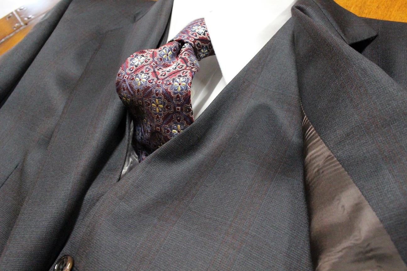 この服地の最大の魅力、それはシルクのような美しい艶感。ウールでありながら特殊な加工(ドルフィン加工)を施すことによってこの艶は生まれます。
