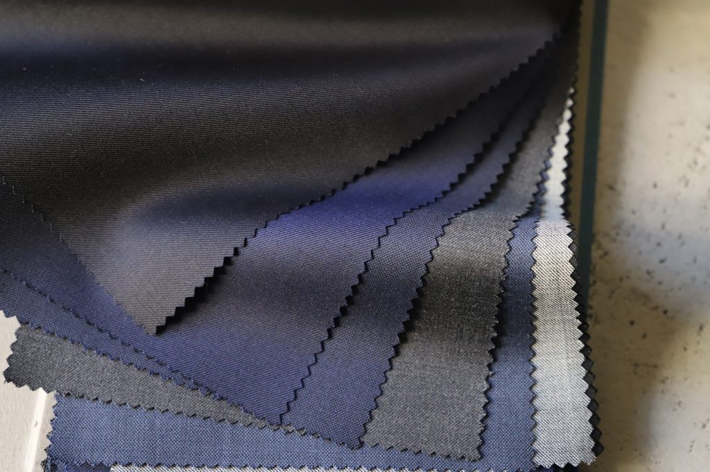 Super150’sの原毛を使用。ソフトな肌触りでありながら、双糸使いによるしっかりとした立体感、美しいドレープが魅力です。