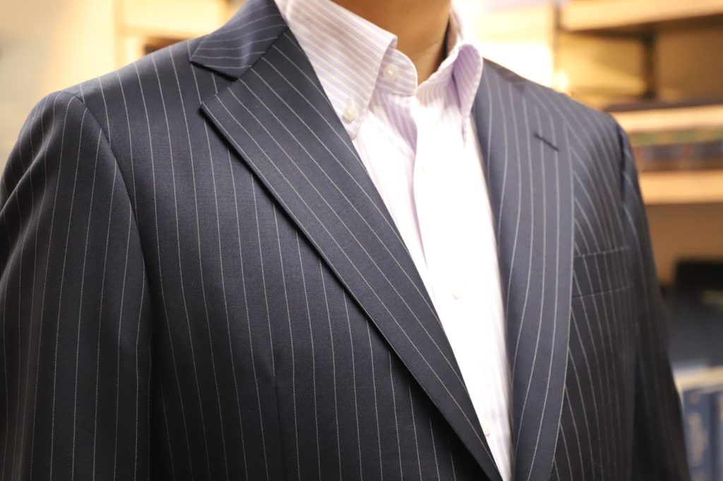 うん、美しいですネ。。。今回は、お堅いビジネスシーンでも活躍してくれるピンストライプの柄行き。丁度いい幅と主張具合でキッチリ感がございます。
