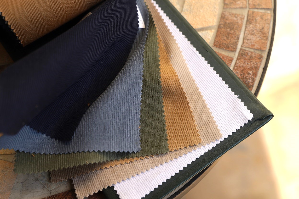 写真下のコットンリネンの服地は、しっかりとコシもございまして、パンツ単品でのオーダーも人気が出そう。テーラード向けに開発された新たなコレクションとなっており、クラシカルなスーツが欲しい方にもお勧め。