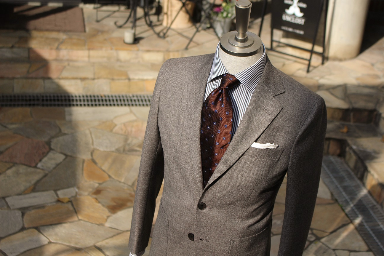 今回はタイドアップスタイル。カッチリとしたビジネスシーンを意識しました。カジュアルシーンでは、今の時期タートルニットなどを合わせると素敵にきまります。セットアップで着こなせばワンランク上のお洒落を楽しんでいただけますヨ。