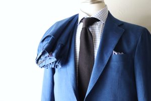 これからの季節には外すことができない服地「ソラーロ」。今回はウェディングスタイルにてオーダーいただきました。ビジネス用スーツでは無い為、この様な可愛らしいデザインも面白い。