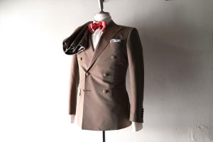 今回もスペンスブライソンの英国リネンを使用。適度な柔らかさとヌメリがあり、着心地もよく本当にお勧め。パンツとしてのオーダーも可能ですので、セットアップでも作れちゃう。