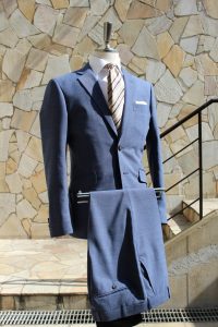 まずはチャコールグレーの服地から。爽やかなカノニコ-ラスティックトロピカル。英国製、モヘヤ混のイングリッシュシルバーン。今季この二点を抑えておくと、間違いなし。