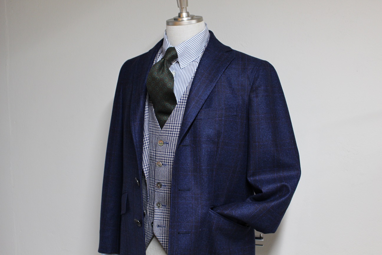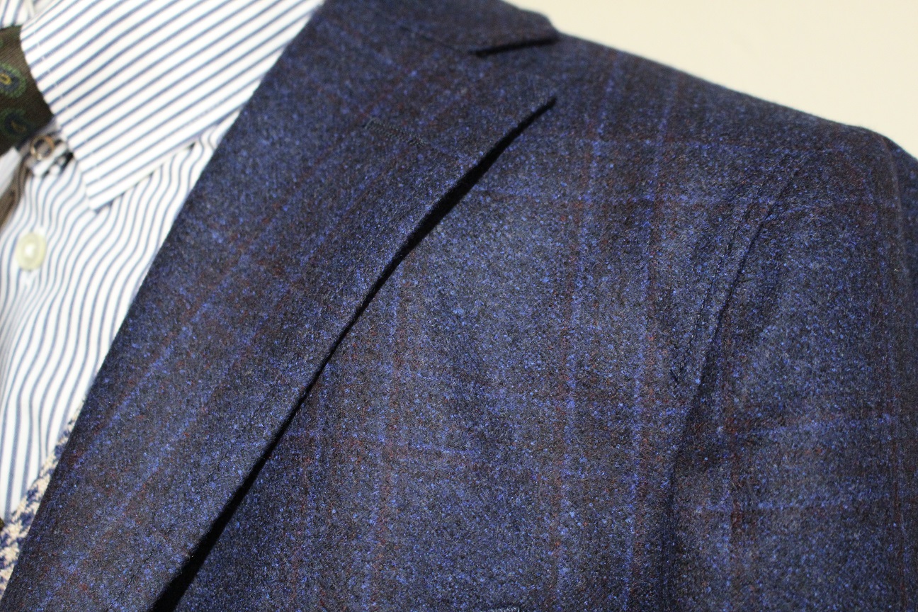 肌触りは抜群な上、打ち込みのしっかりとしたジャケット生地を今回は採用。コート生地と違い、ごわつき感がございません。ジャケット生地には、ファッション性の高い柄行きが多い事も魅力ですネ。オンオフ兼用のチェスターコート。スプリングコートとしてお勧めの服地もございます。