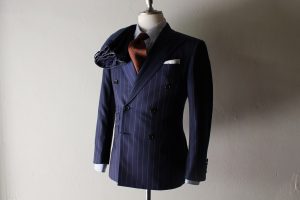 ここ数日、日差しが見え隠れ。風は有り。比較的、過ごしやすい日が続いておりますネ。この調子で早く涼しくなって欲しいものです。早い方では、既に秋冬に向けオーダーをいただいておりますヨ。本日もそんな一着。素敵なネイビースーツのご紹介です。
