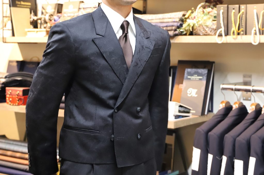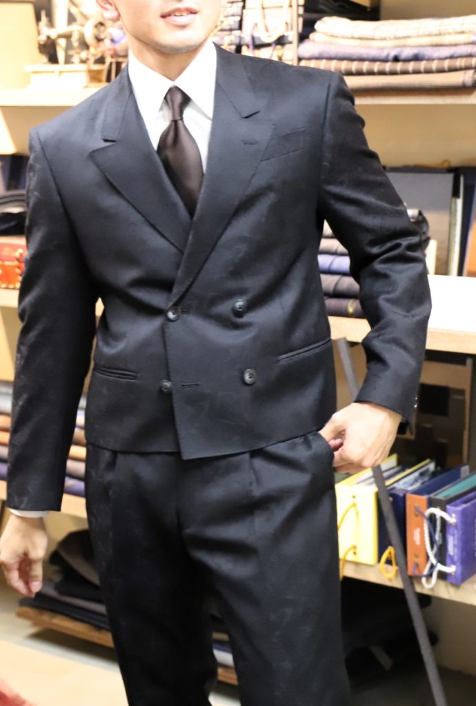 ペイズリー柄のジャガード生地を、ショート丈ジャケットに仕上げました。あまり受注することのないデザインで、色々と試行錯誤。出来上がり着用姿が素敵すぎましたネ。これは既製品では手に入らないデザインかと。