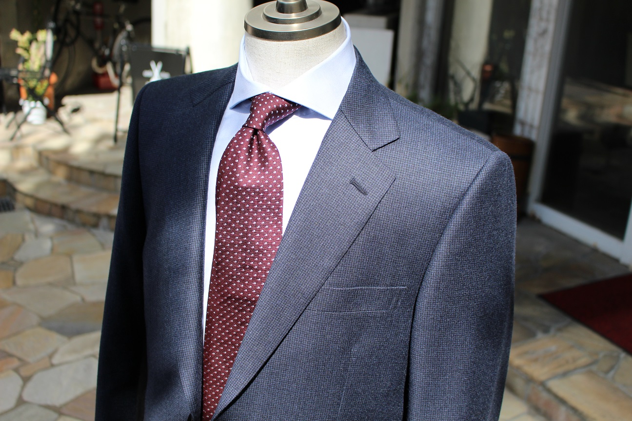 ブルーグレーの千鳥柄。季節感のあるソフトフランネルの服地をチョイスいただきました。蝶ネクタイも服地と同じ生地でオーダー。一見クラシカルなタキシードのようで、実は拘りがたくさん詰まっております!!リメイク可能タキシード、、、ご着用後はリメイクし、スーツとしてお使いいただけますヨ!
