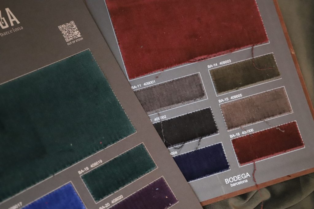 今年の成人式用スーツのご注文、例年に増してベロア生地が人気の様子。定番のブラックは勿論、ブラウンやボルドー、グリーンなどなど、カラーバリエーション豊富に取り揃えております。